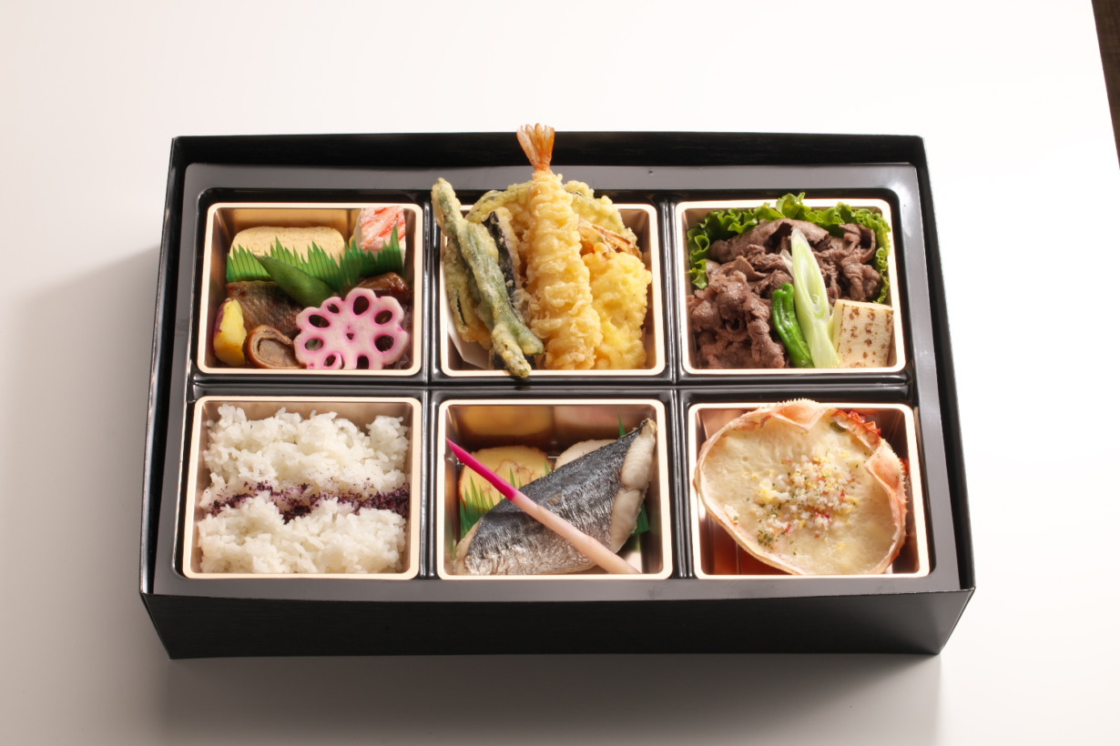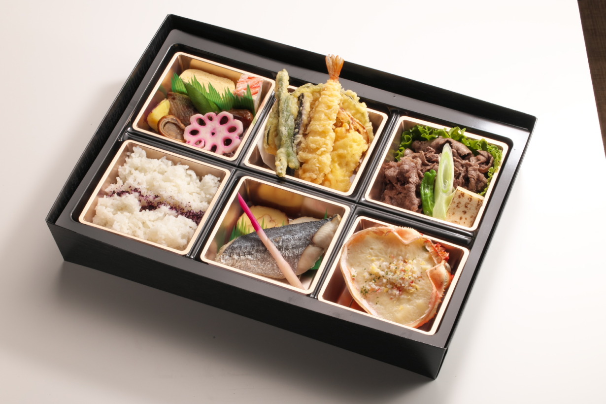 蟹グラタンや天麩羅などを組み合わせ、法事・慶事におすすめのおもてなし会席弁当です。
